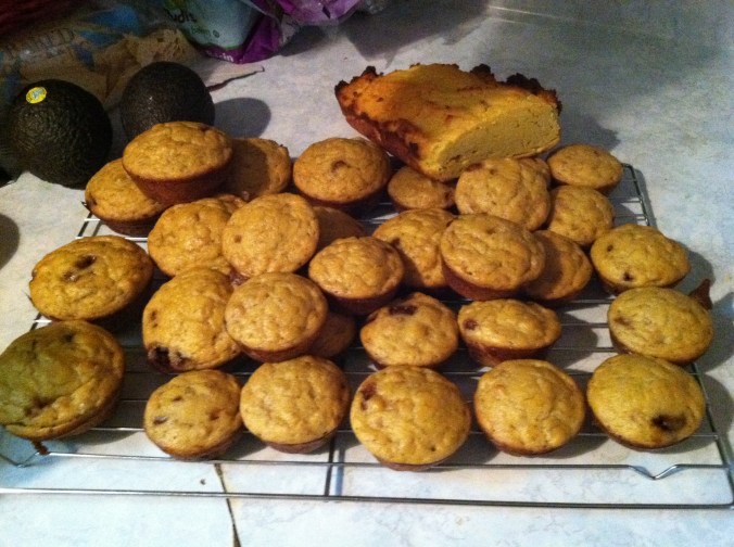 Please note this was a half day event since I had not baked from scratch for quite a while. And on another note your will learn that gluten is the element that holds your baked goods together! So with that said these tasted different than any bread I had ever eaten and they did not rise like most muffins. Can you see the heavy looking loaf of bread in the back of the muffin stack? It hardly rose at all. Coconut flour is very dense and super absorbent. It requires lots and lots of liquid. So there is a learning curve with using new gluten-free flours and I have come to the realization that baking is moody, it will rise if it wants to and will often surprise you with pure amazingness. Cooking is like most women I know!